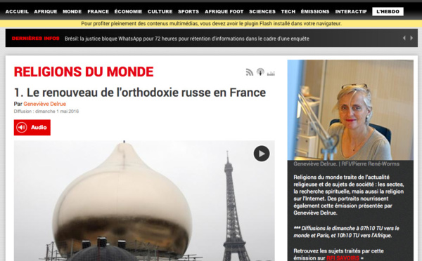 RFI: "Le renouveau de l'orthodoxie russe en France". Émission de Geneviève Delrue avec le P. Alexandre Siniakov