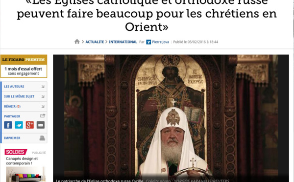 «Les Eglises catholique et orthodoxe russe peuvent faire beaucoup pour les chrétiens en Orient»