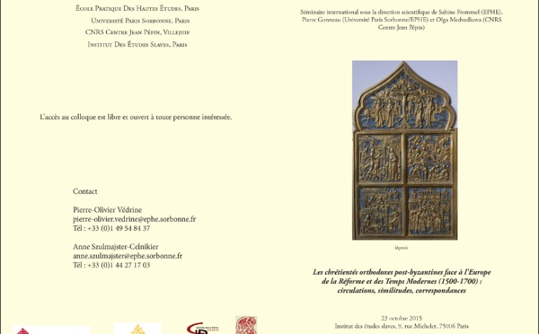 ANNONCE: Colloque de l'EPHE "Les chrétientés orthodoxes post-byzantines face à l'Europe de la Réforme et des Temps Modernes"