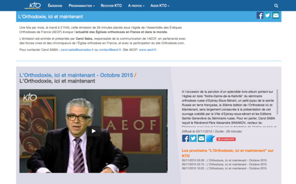 L'émission de KTO "L'Orthodoxie: ici et maintenant" d'octobre 2015 consacrée à l'église en bois du séminaire